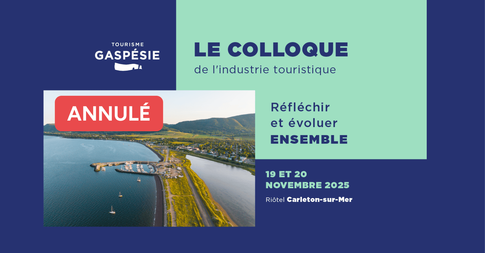 Tourisme Gaspésie annonce avec regret l’annulation du Colloque de l’industrie touristique de la Gaspésie 2025, qui devait se tenir les 19 et 20 novembre à Carleton-sur-Mer.